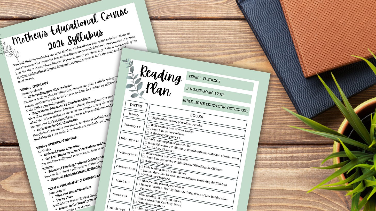 However, if you would like to financially support the course, paid subscribers will receive a custom vinyl sticker, printable bookmarks with each book’s reading plans, audio recordings of the weekly Charlotte Mason readings, and additional printables throughout the year. Paid subscriptions will be turned on in January.