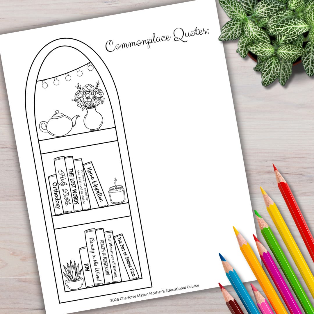DownloadsPrintable Book Tracker Coloring PageKristina SchauerMar 11, 2026∙ Paid1ShareTrack your progress in the the Charlotte Mason Mother’s Educational Course by coloring in the books on the bookshelf as we finish them! You can add commonplace quotes (quotes you want to remember) in the blank space. Happy Reading!SubscribeThis post is for paid subscribersSubscribeAlready a paid subscriber? Sign in